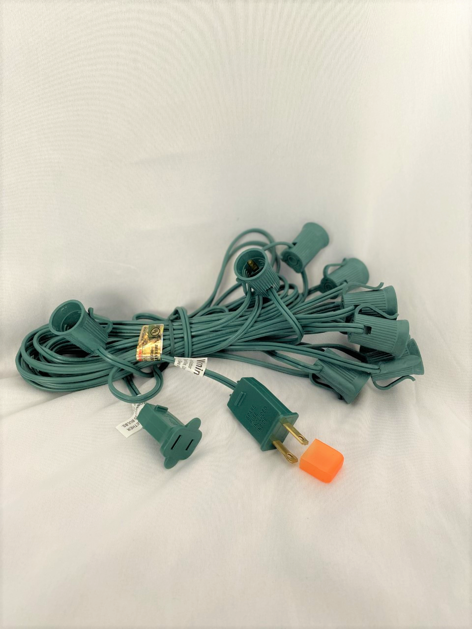 30Ft Electric Cord, with 10 Light bulb sockets at 3 feet spacing, 1 male end connector plug and 1 female end connector plug to add multiple sets. This is the replacement cord for our Electric Luminarias Sets.