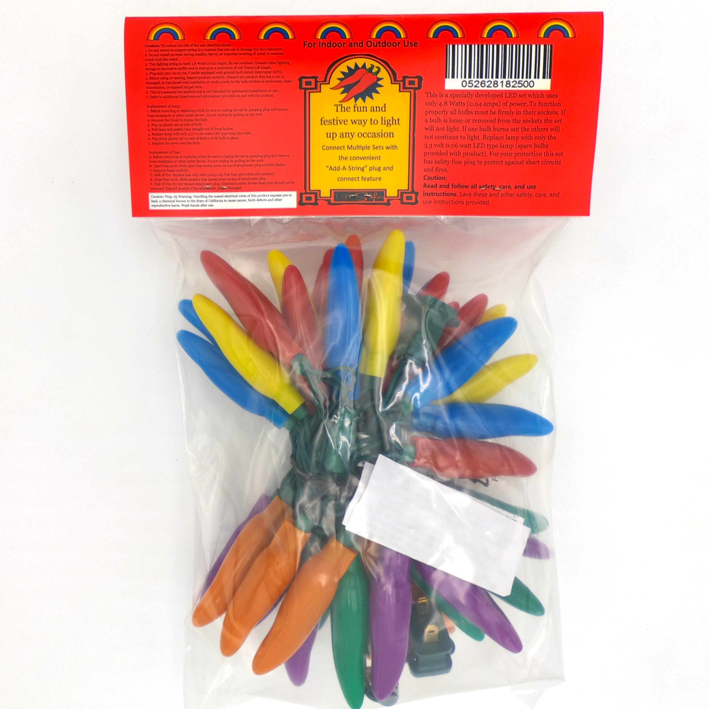 50 LED Rainbow Red, Orange, Yellow, Green, Blue, & Purple Chili Pepper Lights (50 Lights, 13 1/2-ft. Long)