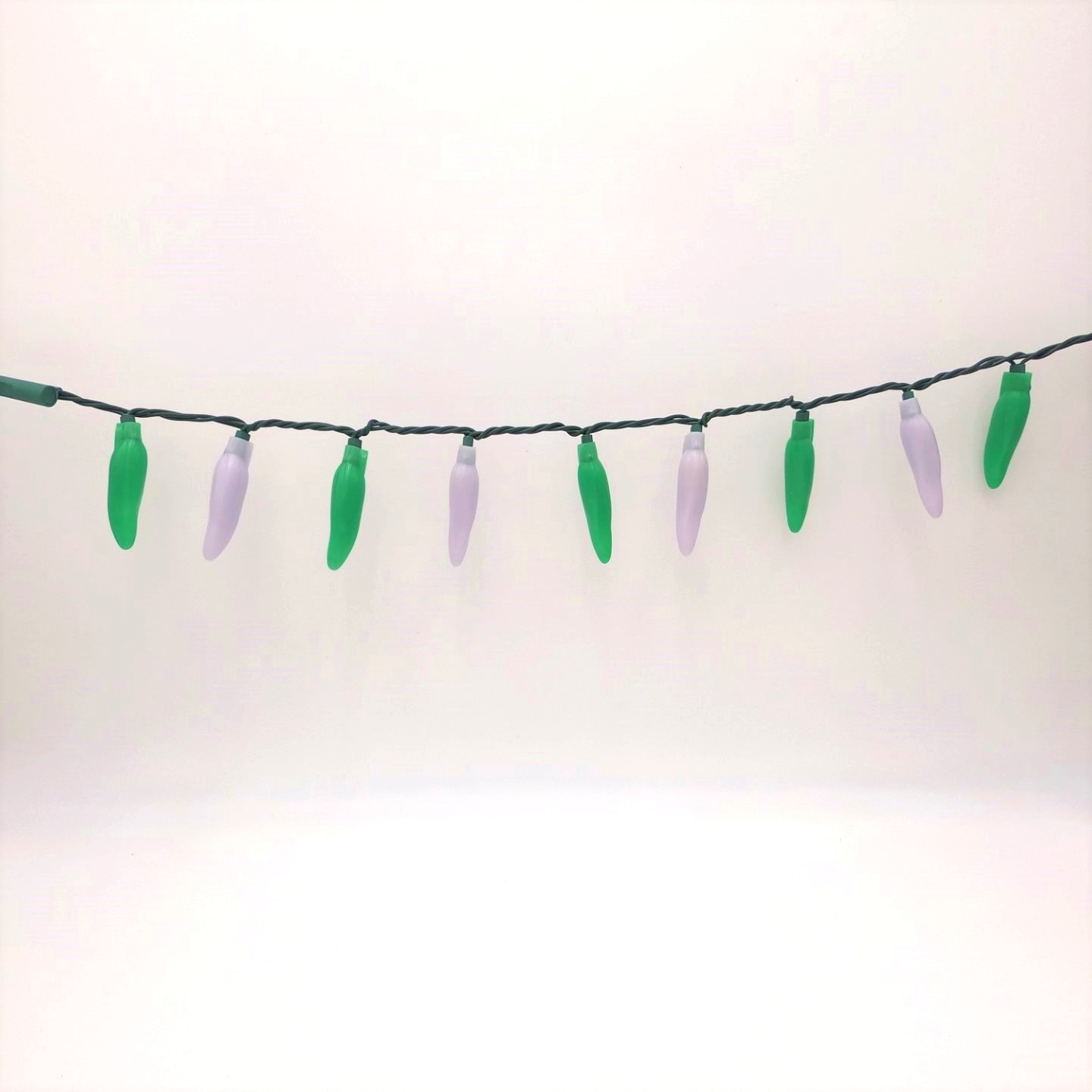 50 LED St Patrick’s Light Green & White Chili Pepper Lights (50 Lights, 13 1/2-ft. Long, 3 inch spacing between lights, Each Chili’s measurement is 3 inches long by 3/4 inch wide)
