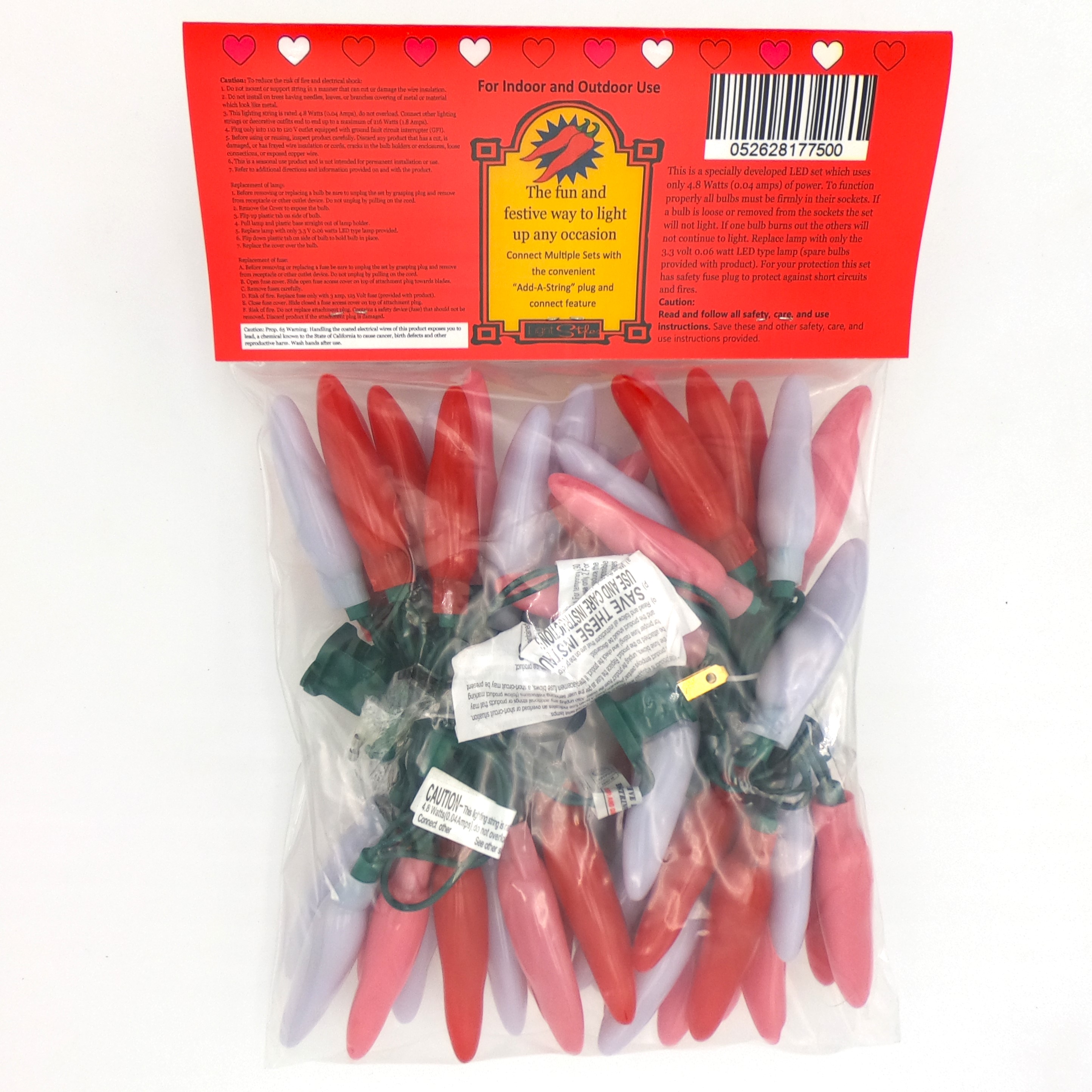 50 LED Sweetheart Red, White, & Pink Chili Pepper Lights (50 Lights, 13 1/2-ft. Long)