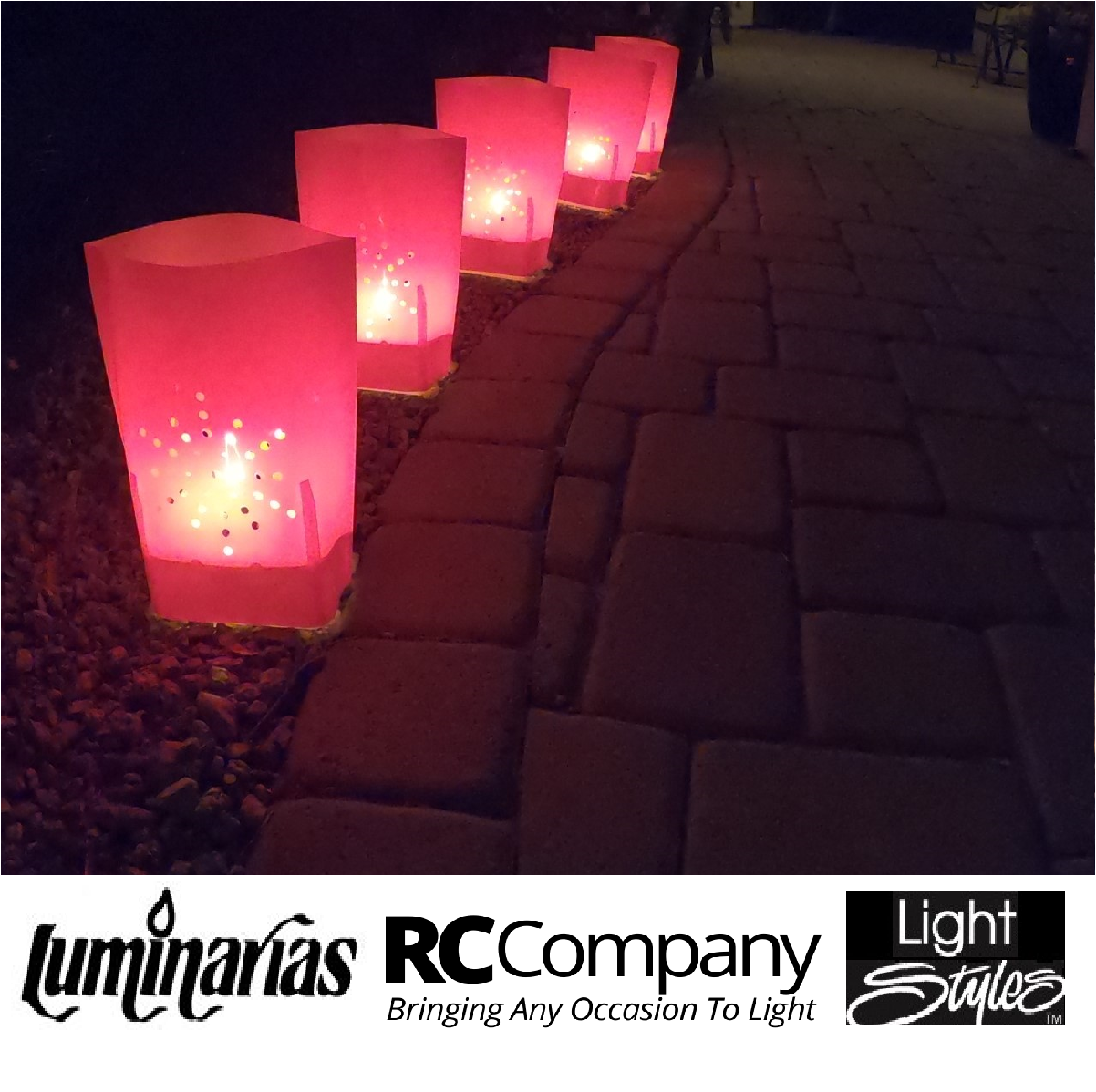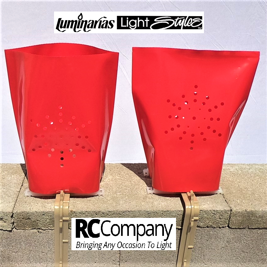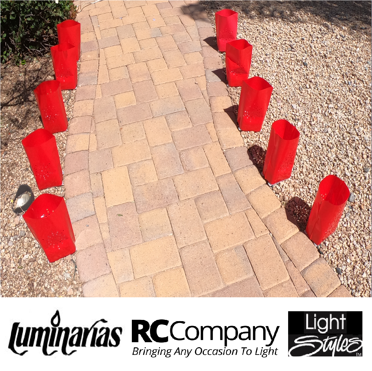 Luminarias are a Spanish tradition originally using a brown paper bag with sand in the bottom and a candle. They were used to light sidewalks and pathways on Christmas Eve. Some say the original name was farolitos. RC Company manufactures Electric Luminarias. Our complete set includes a 30 ft cord with 10 Luminarias spaced every 3 feet. We offer various colored sleeves or bags for your holiday decorating and special events. Our sleeves are sold sealed at the top but may be cut if you prefer more of a bag look. See photo for variation. Online orders are shipped in a plain brown box in order to prevent theft.